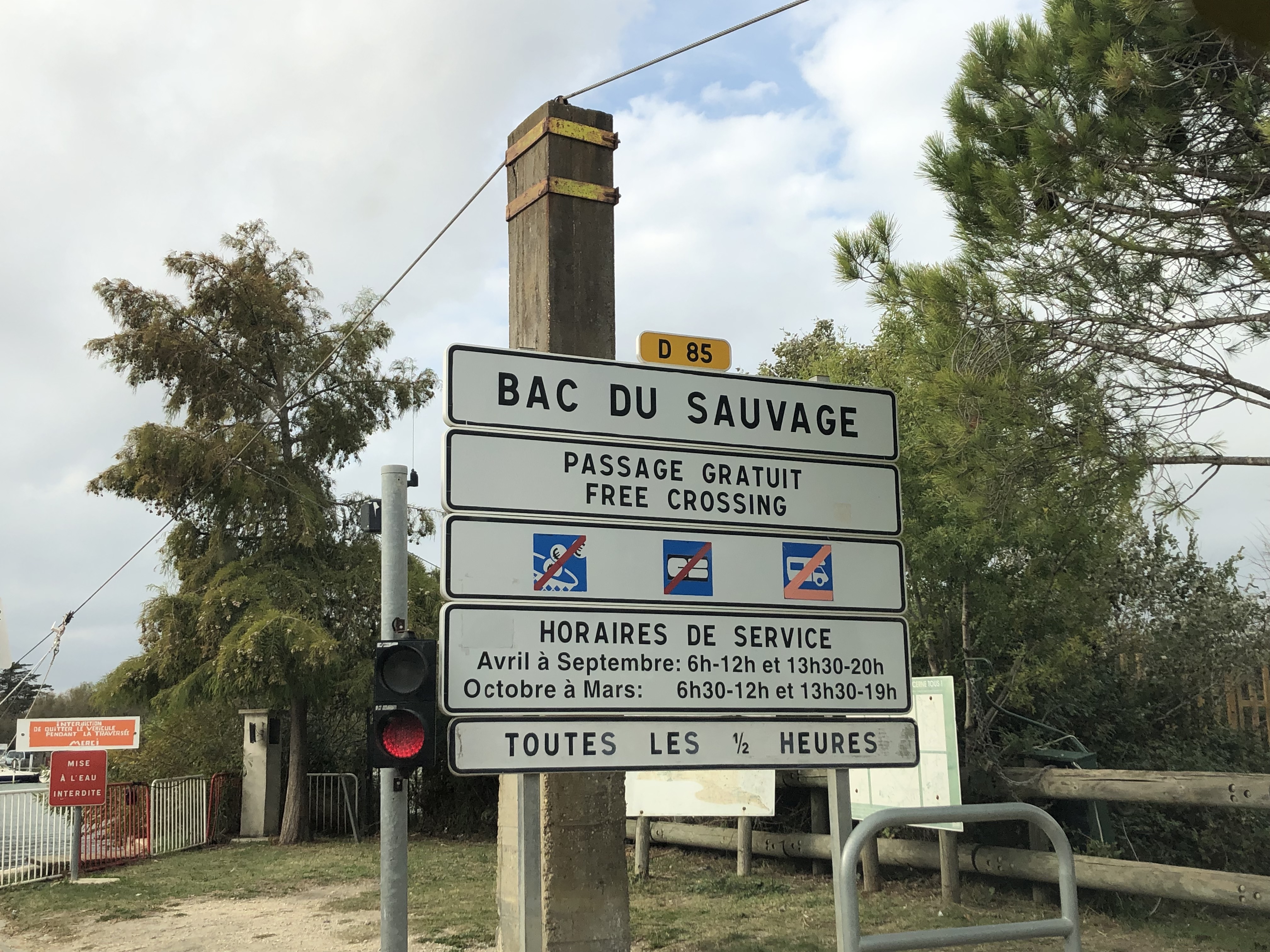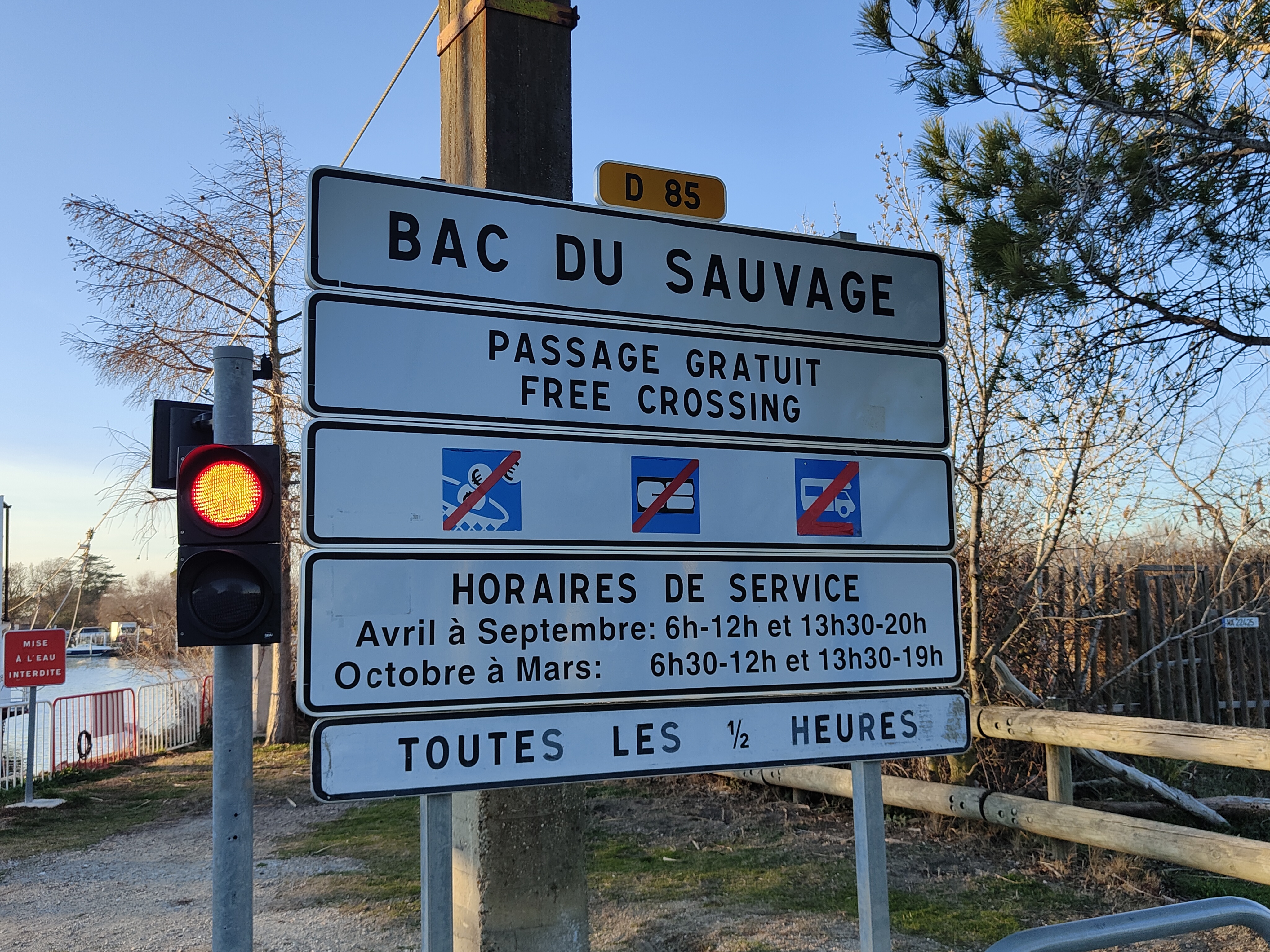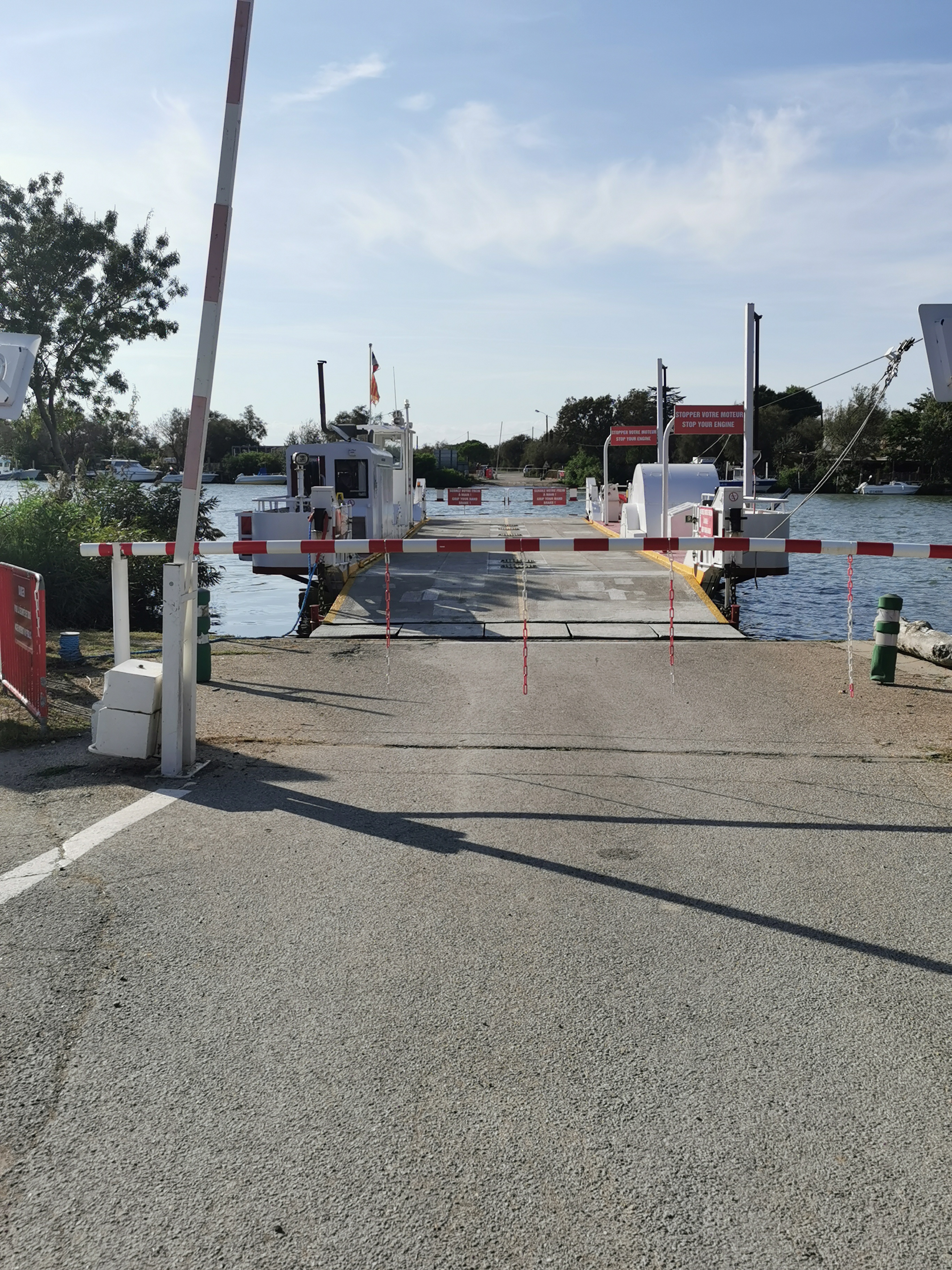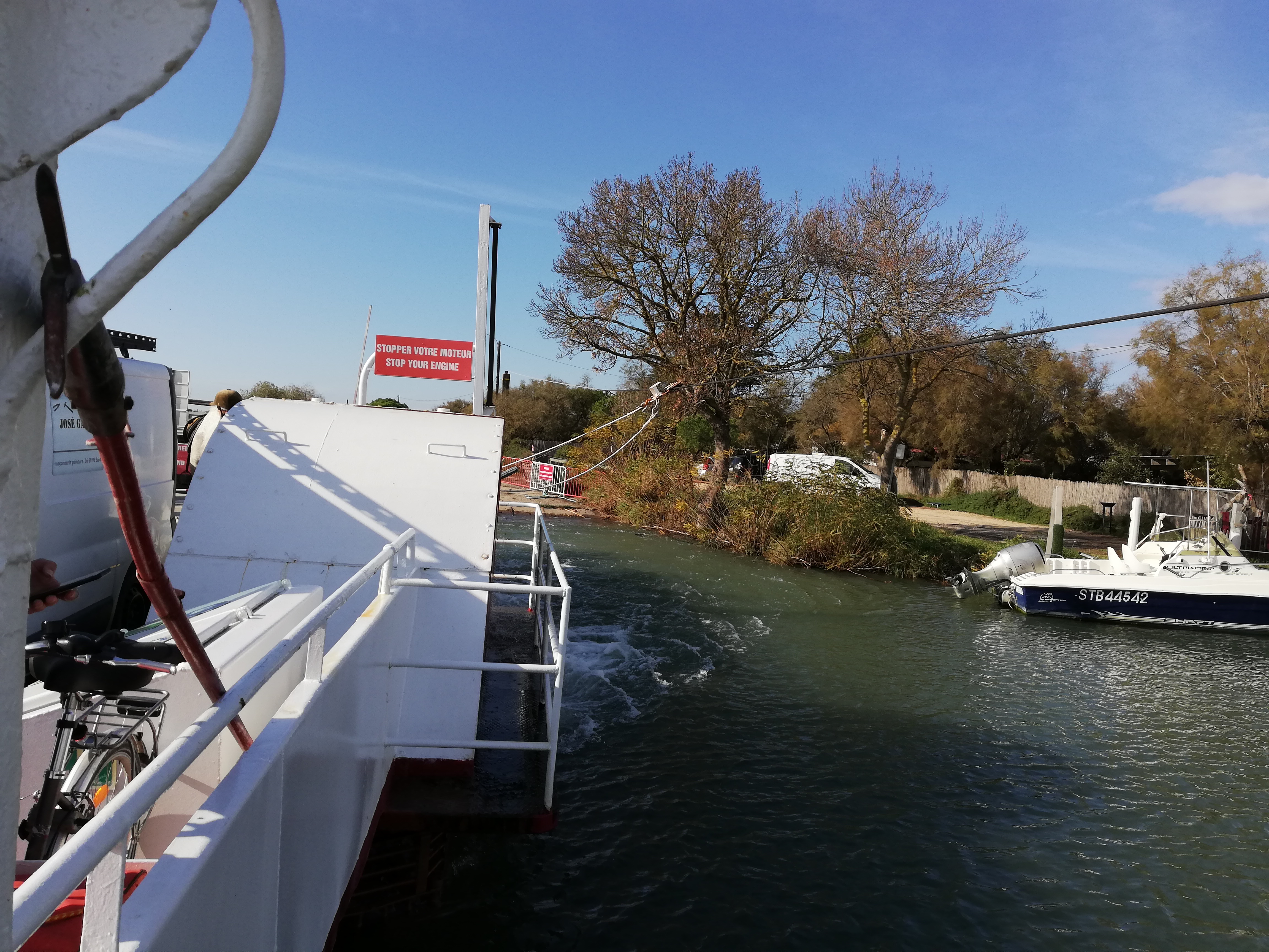 Bac pour traversée du petit Rhône, horaires à respecter (Fermé de 12 à 13h30). Sympa et pratique !