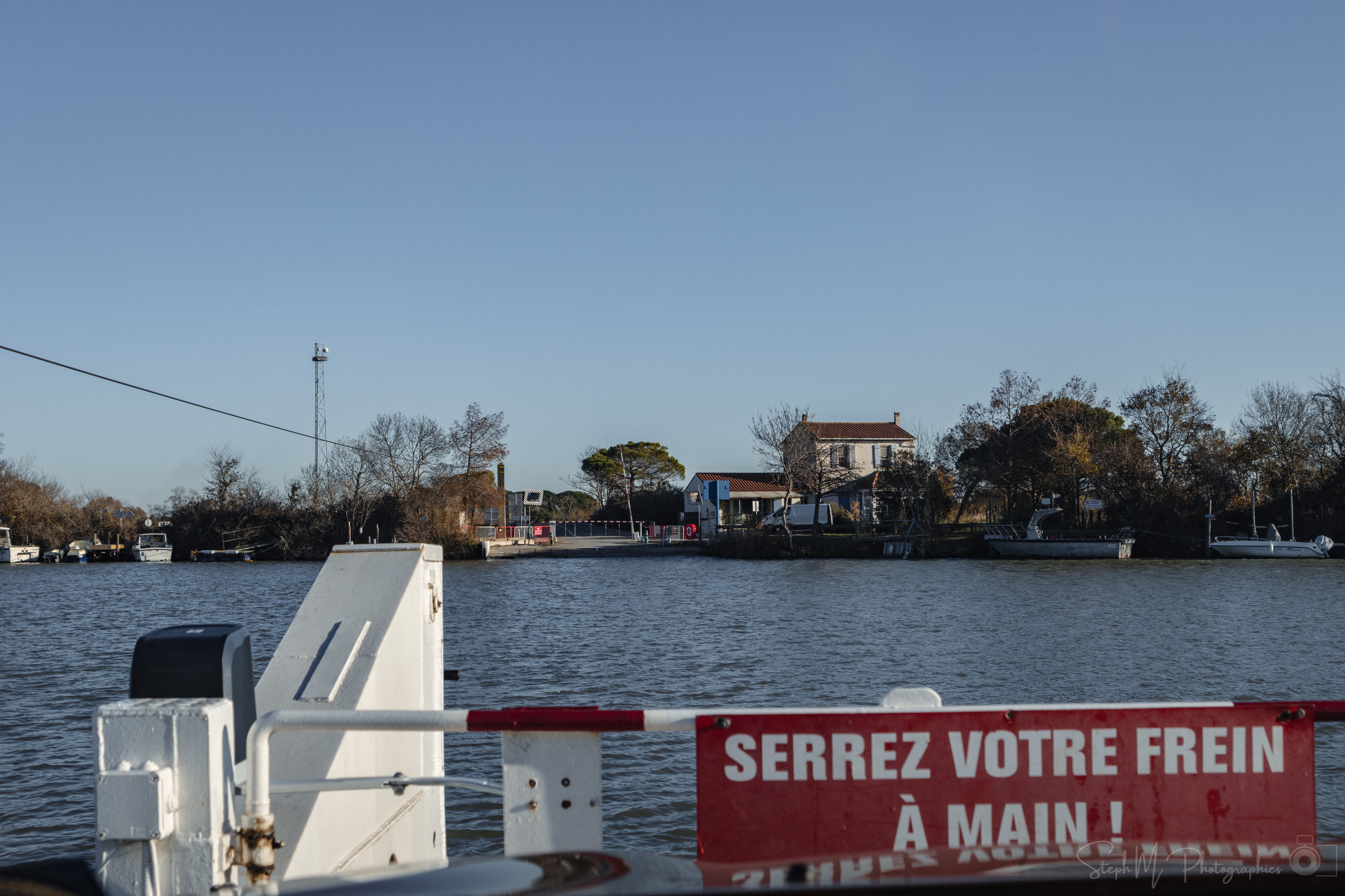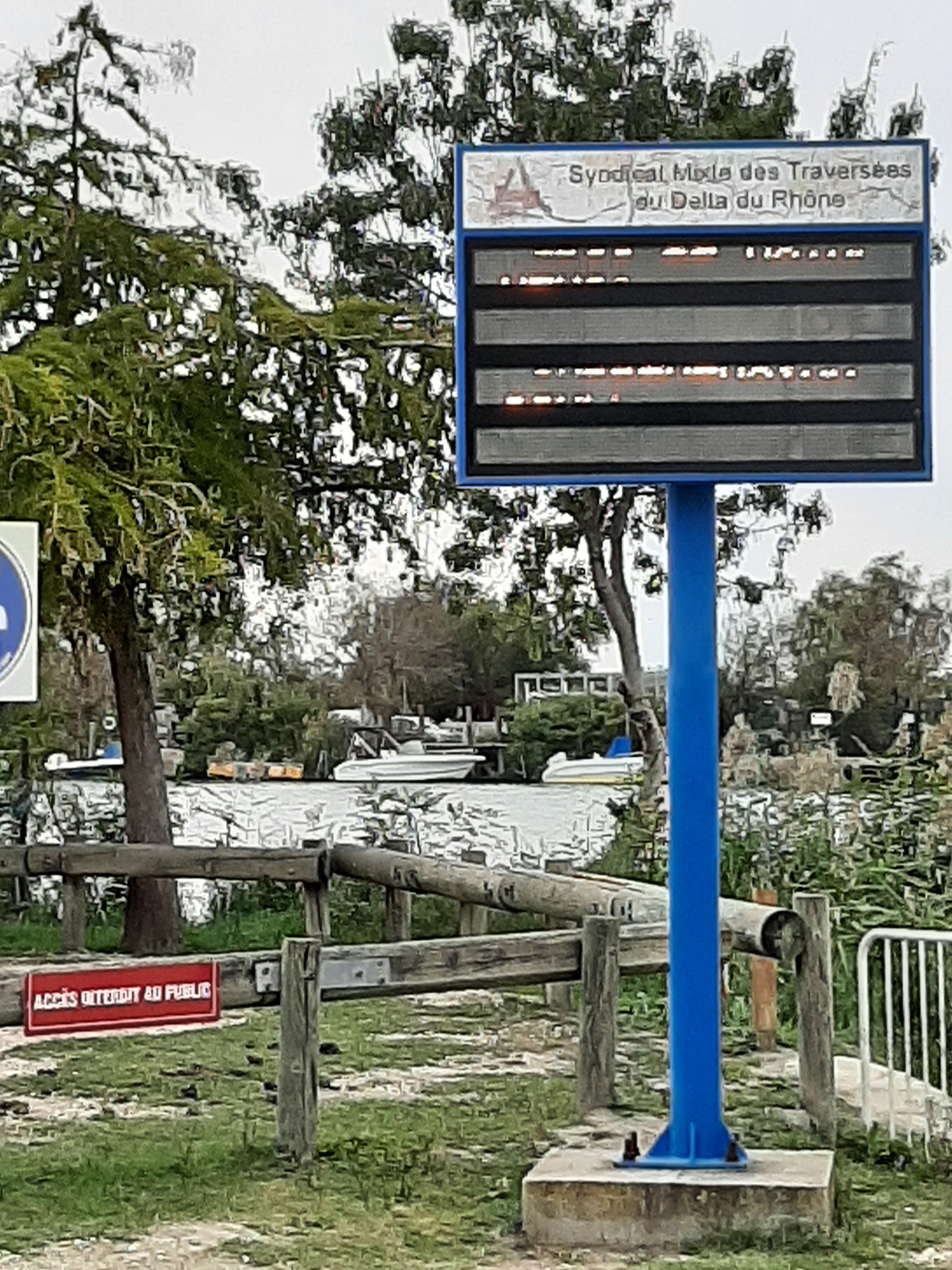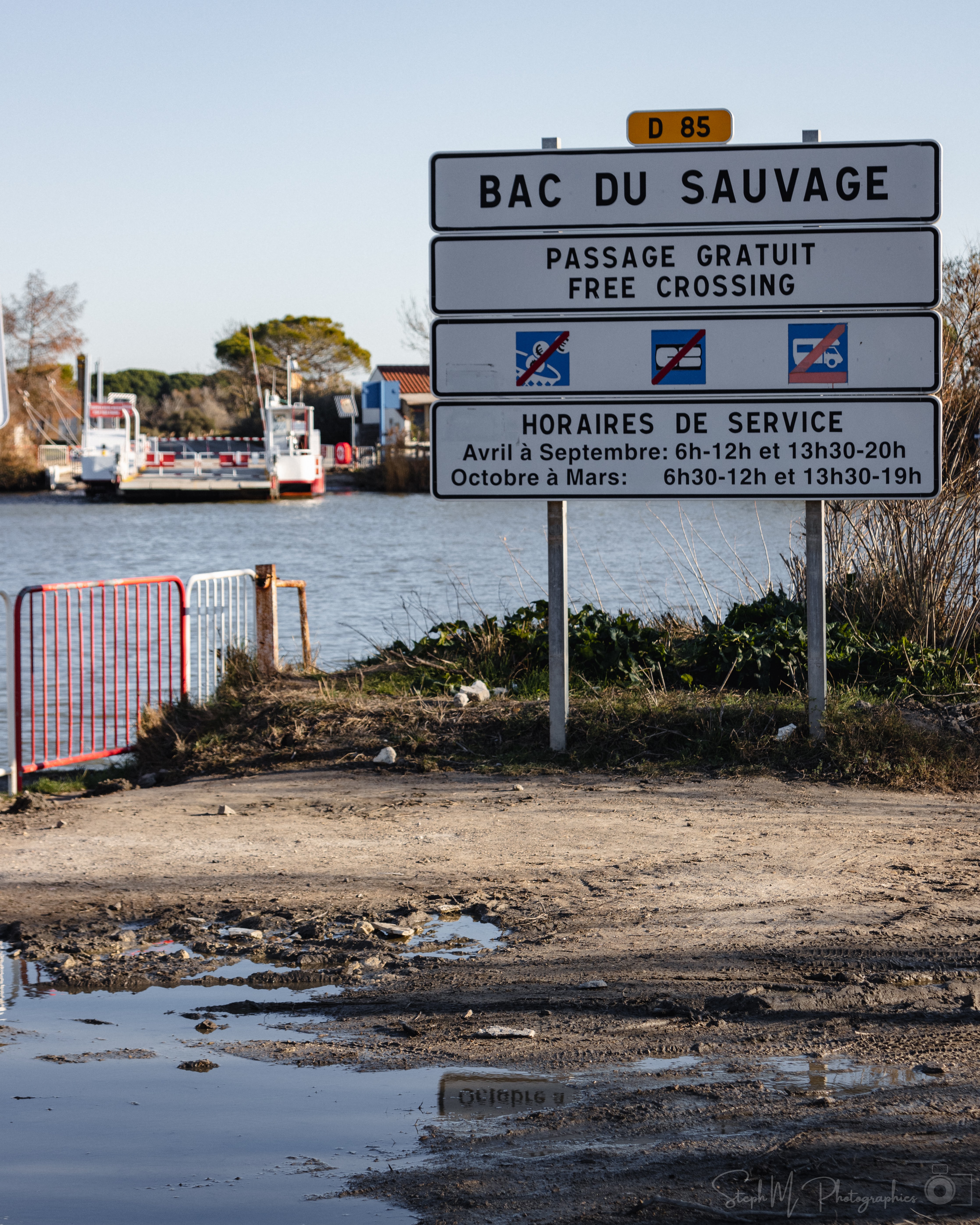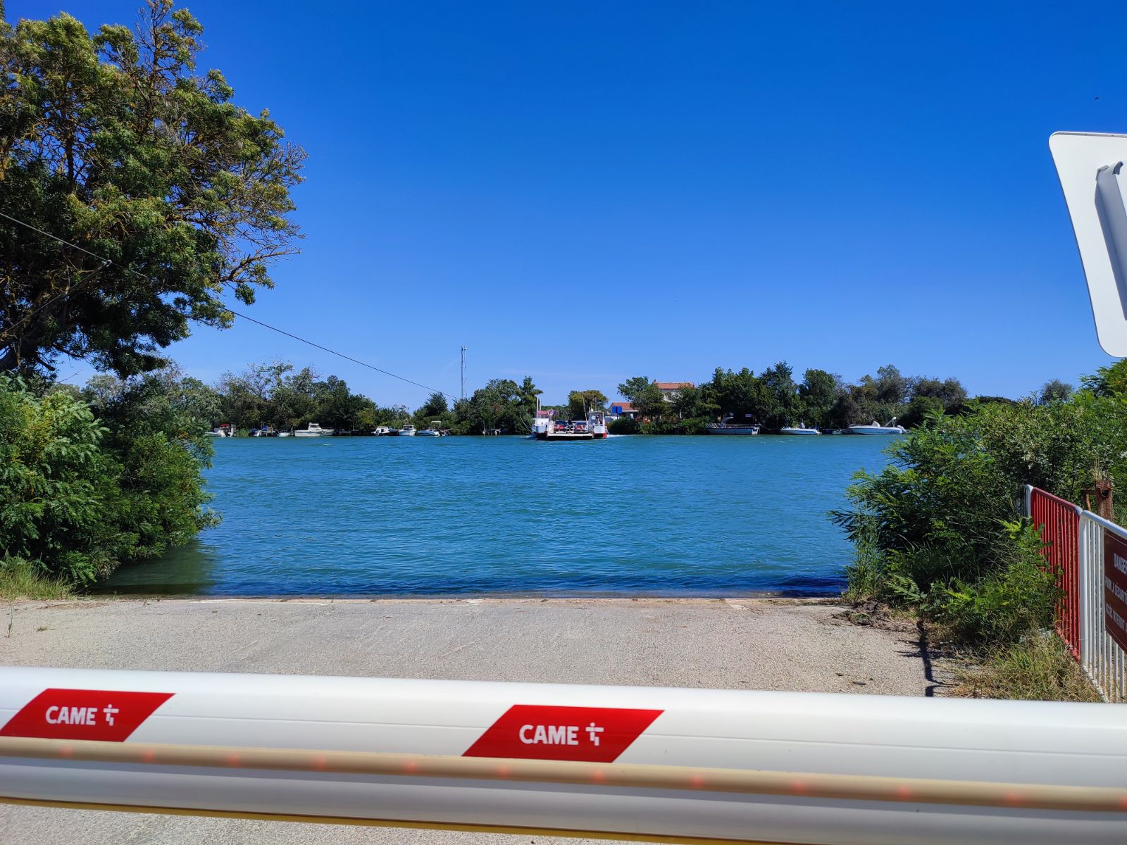 Bac pour traversée du petit Rhône, horaires à respecter (Fermé de 12 à 13h30). Sympa et pratique !