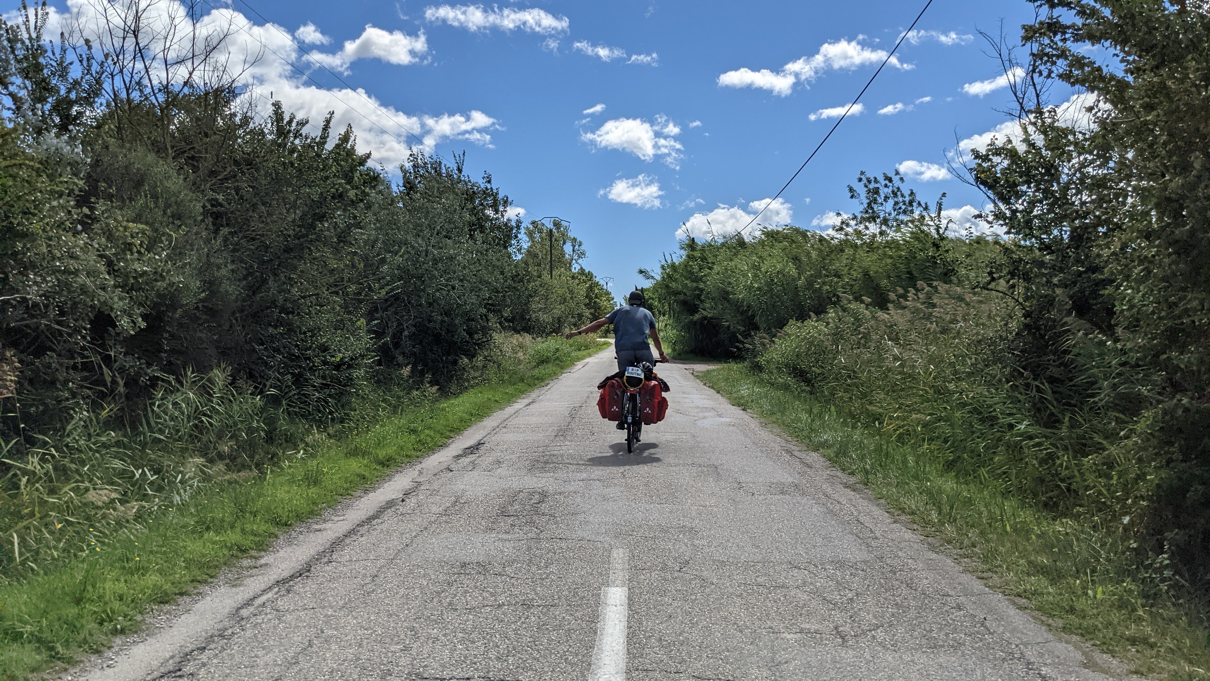 Nous avons emprunté la route du bac du Sauvage à vélo. Entouré de nature, c'est un endroit magnifique. Le bac du Sauvage est une plateforme à câble qui relie gratuitement les deux rives du Petit-Rhône. C’est super sympa, il y a des vélos, des motos, des voitures. La traversée se fait en même pas 5 minutes. Nous avons eu de la chance, car il y a des horaires d’ouverture que nous n’avions pas vu en avance. Nous sommes arrivés par hasard et à la bonne heure pour passer ! Petit conseil : vérifier les horaires pour ne pas être coincé. Nous recommandons cet endroit et cette traversée. À vélo, c'est un vrai bonheur de le faire. RIP Routine, 19.09.2021