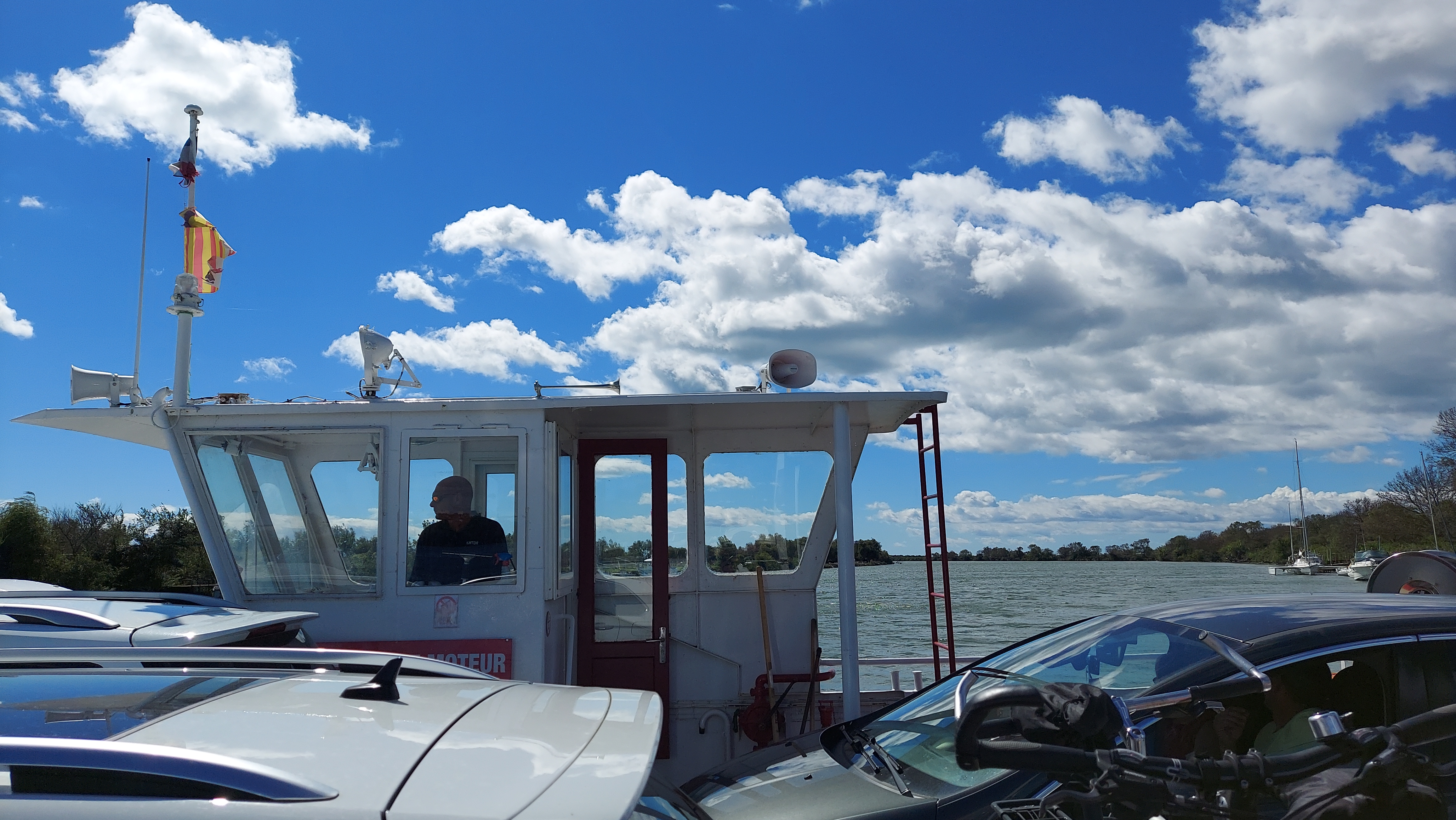 Super sympa la traversée en bac du petit Rhône avec les motos 👌✌️