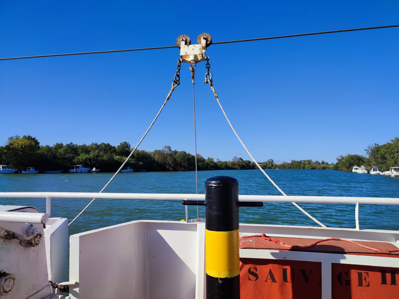 Belle traversée du petit Rhône. Cette petite traversée au calme a un certain charme. On a apprécié ce moment de détente et ce lieu un peu à l écart des grands axes de circulation de la camarade.