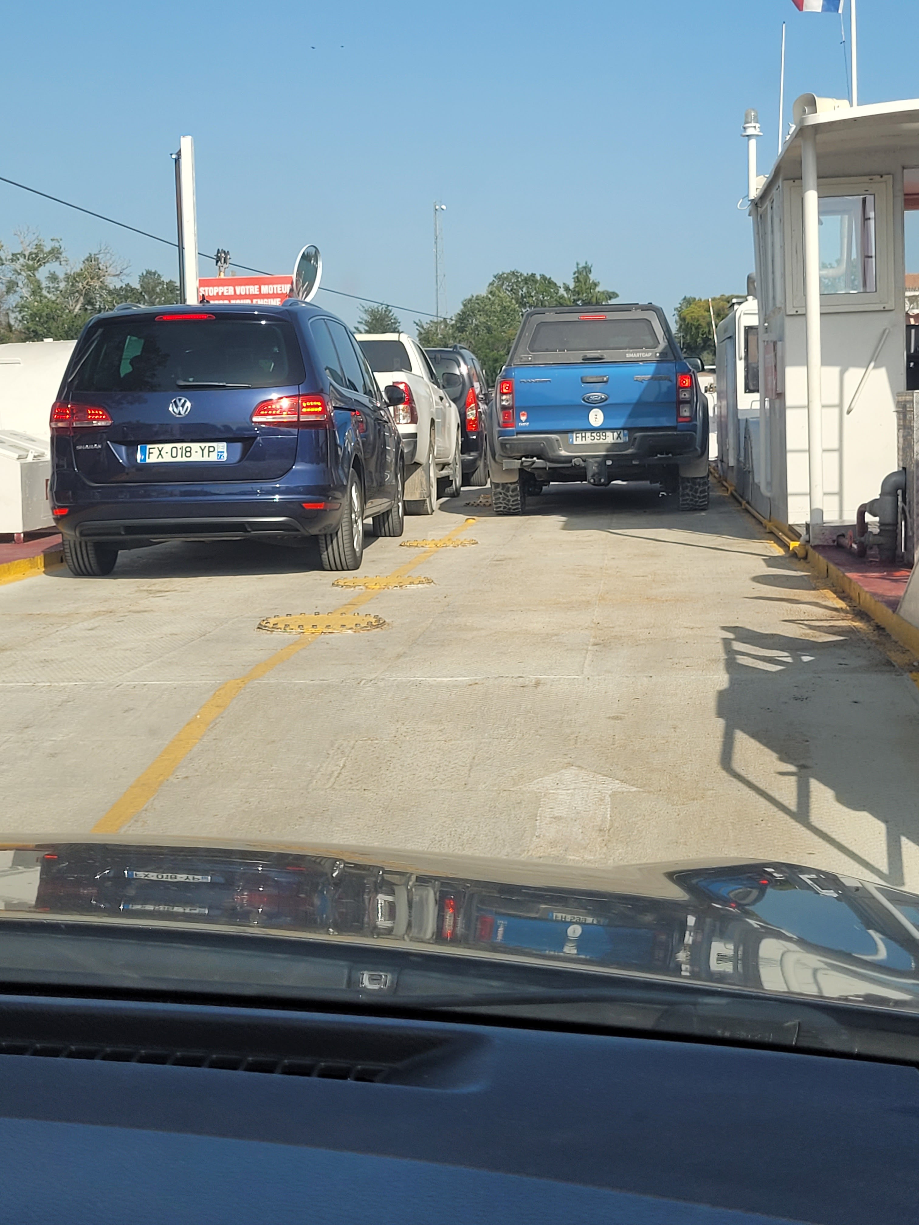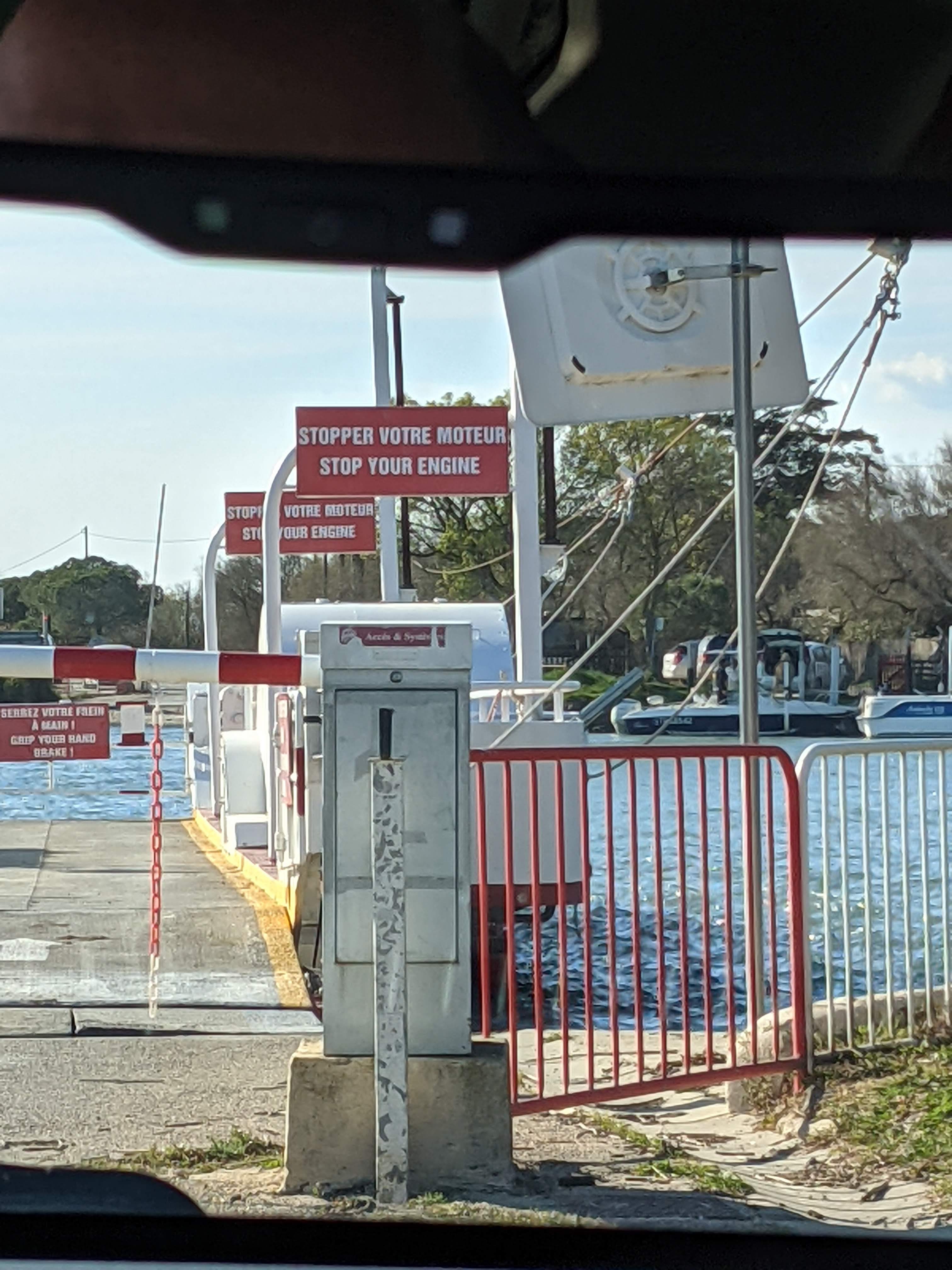 Bac soit disant ouvert.....Mais non, barrière fermée. Aucun mouvement, personne. Nous avons attendu de 11h15 à 12h05 pour rien!!