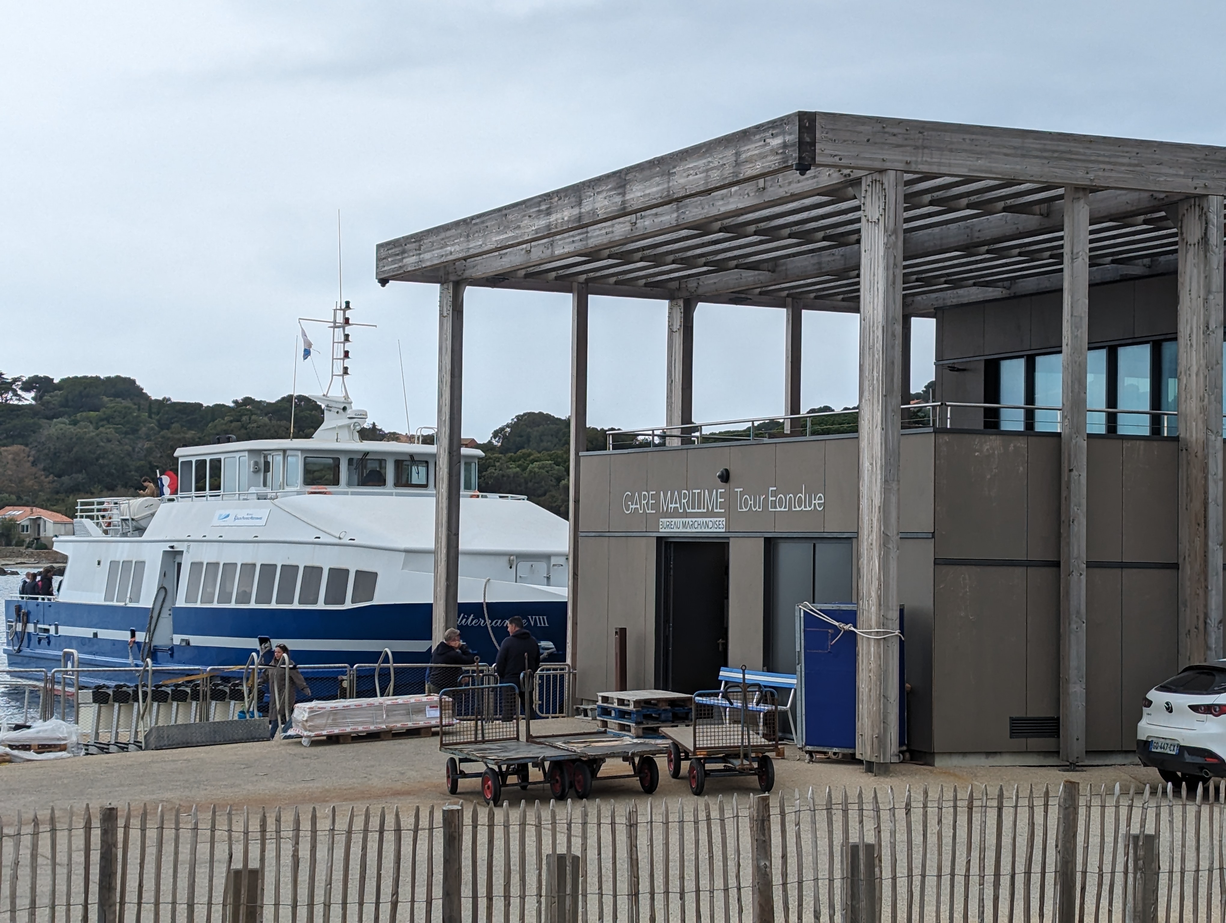 Lieu merveilleux donnant acces sur les iles d'or. Du personnel sympathique est là pour vous renseigner et vous servir si besoin. Equipé d'un nouveau bâtiment pour recevoir les passagers vers Portquerolle, celui-ci semble être très fonctionnel et est assez joli mais la modernité de son architecture tranche avec les maisons et immeubles de style provençale et le monument historique de la Tour Fondue. Dommage que l'acces au lieu soit parfois difficile mais le prix à payer pour le découvrir. Des petites finitions sont à apporter concernant les barrières et la signalisation côté quais.