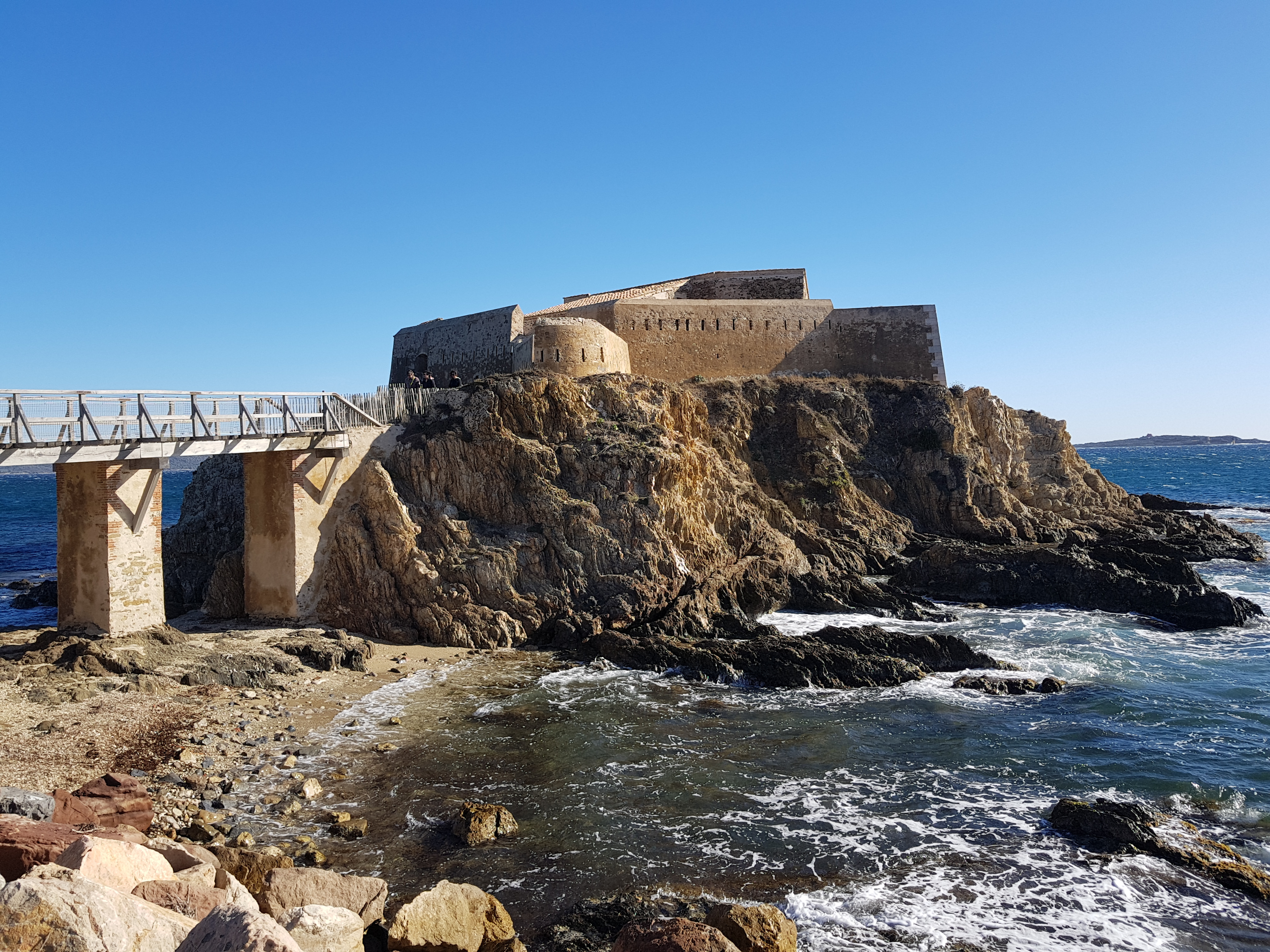 J'ai adoré cet endroit, Petites criques, château, paysage, juste envie de se poser pour l'apéro et de profiter de la vue sur Porquerolles et Port-Cros