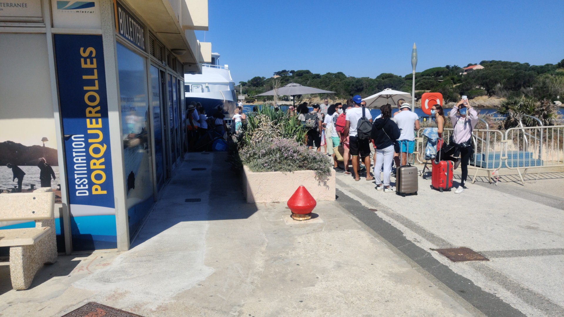 La gestion de l'attente des passagers sur le quai de Porquerolles avec la canicule doit être urgemment améliorée. Pas d'ombriere, pas de gestion des flux en priorisant les familles avec enfants de moins de 6 ans. Il faut mettre un agent qui gère les files d'attente.
